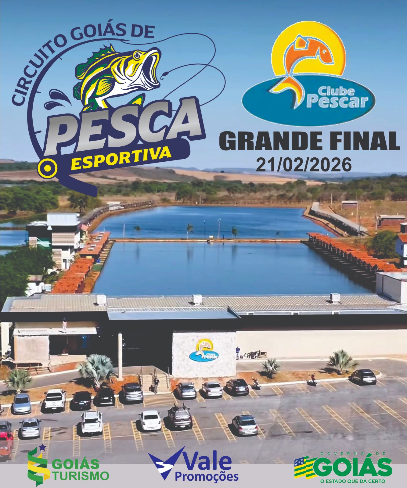 Circuito Goiás de Pesca Esportiva - ETAPA 08Data: 20/02/2026 Início: 09:00:00 - Término: 19:00:00 horas. Local: Clube PescarCidade: Luziânia / GOOrg.: Vale PromoçõesRegulamento: Clique AquiTipo: 3 Maiores Peixes Inscrever-me
